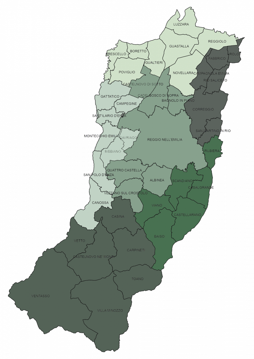 Distretto di Reggio Emilia: comuni di Reggio Emilia, Albinea, Bagnolo in Piano, Cadelbosco di Sopra, Castelnovo di Sotto, Quattro Castella, Vezzano sul Crostolo